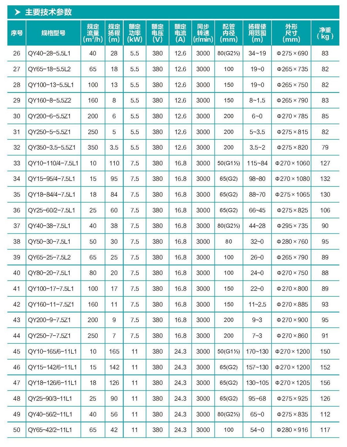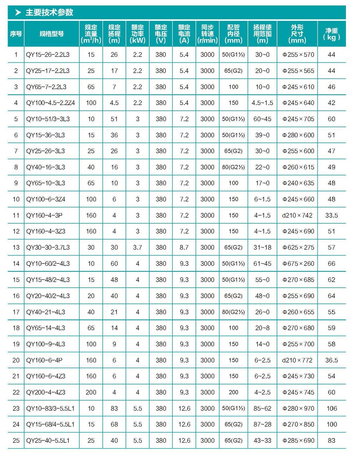 QY 型充油式潛水電泵