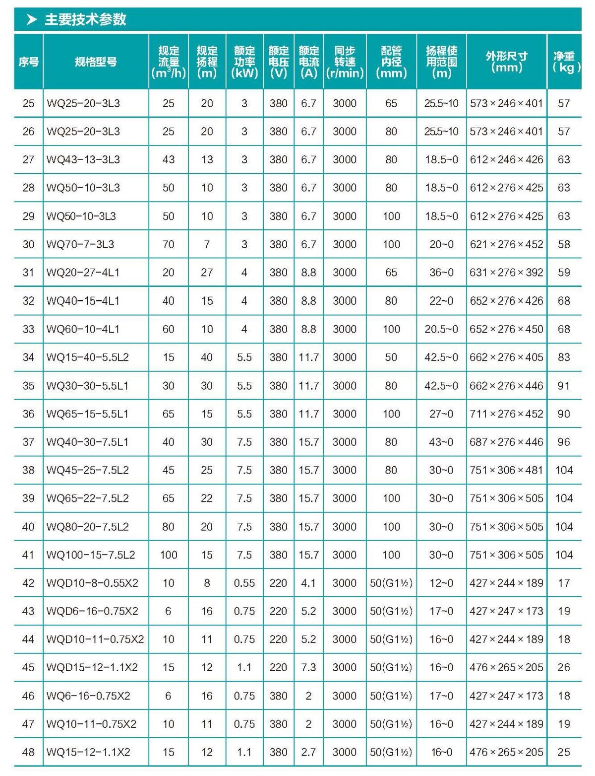 WQ(D)-L 型污水污物潛水電泵 ( 以下簡(jiǎn)稱電泵 ),電泵由水泵、密封 和電動(dòng)機(jī)三部分組成,電動(dòng)機(jī)位于電泵上部,為單相或三相異步電動(dòng)機(jī); 水泵位于電泵下部,為流道式葉輪 - 蝸殼結(jié)構(gòu);水泵與電機(jī)之間采用 二個(gè)獨(dú)立機(jī)械密封作動(dòng)密封,各固定止口密封處采用 "O" 形耐油橡膠 密封圈作靜密封,確保電泵的可靠性。電泵轉(zhuǎn)子軸采用摩擦焊接軸材 質(zhì),確保軸有更可靠的機(jī)械強(qiáng)度,可有效提高軸的耐磨性和耐腐蝕性, 同時(shí)也便于葉輪的維修拆卸。